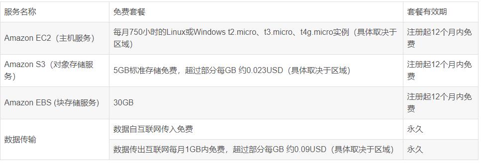 由于亞馬遜云科技服務種類較多,且計費詳細,很多用戶有些看不懂,所以對使用亞馬遜云望而卻步。其實亞馬遜云科技很多服務都有免費套餐,以讓用戶體驗,這些服務的免費套餐,搭建一個私人網盤綽綽有余。由于亞馬遜云海外區僅需個人信用卡就可以注冊,所以我們以海外區為例。我們可以從以下鏈接亞馬遜AWS海外區域賬戶免費套餐_免費云服務-AWS云服務 看到亞馬遜云哪些服務具備免費套餐: