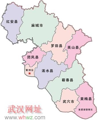 黃岡地處湖北省東部、大別山南麓、長江中游北岸,京九鐵路中段。現轄一區(黃州)、二市(武穴、麻城)、七縣(紅安、羅田、英山、浠水、蘄春、黃梅、團風)和一個縣級龍感湖農場,版圖面積1.74萬平方公里,總人口730萬。